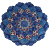 - Изысканная цветовая палитра: Тарелка выполнена в благородной гамме. На белом фоне сияет синяя фигурная кайма и центральный медальон. От центра расходятся нежные бежевые и голубые лепестки, создавая сложную симметричную композицию. Такой узор, расходящийся от центра, в персидской традиции часто символизирует солнце и божественное начало.