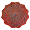 Особенности: центральный цветочный мотив, витиеватый линейный орнамент