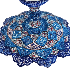 Изящная конфетница из эмалированной меди, которая станет главным украшением вашего стола. Уникальное ручная работа из Ирана с тонкой чеканкой и роскошной палитрой цветов: глубокий синий, небесный голубой и теплый бежевый.