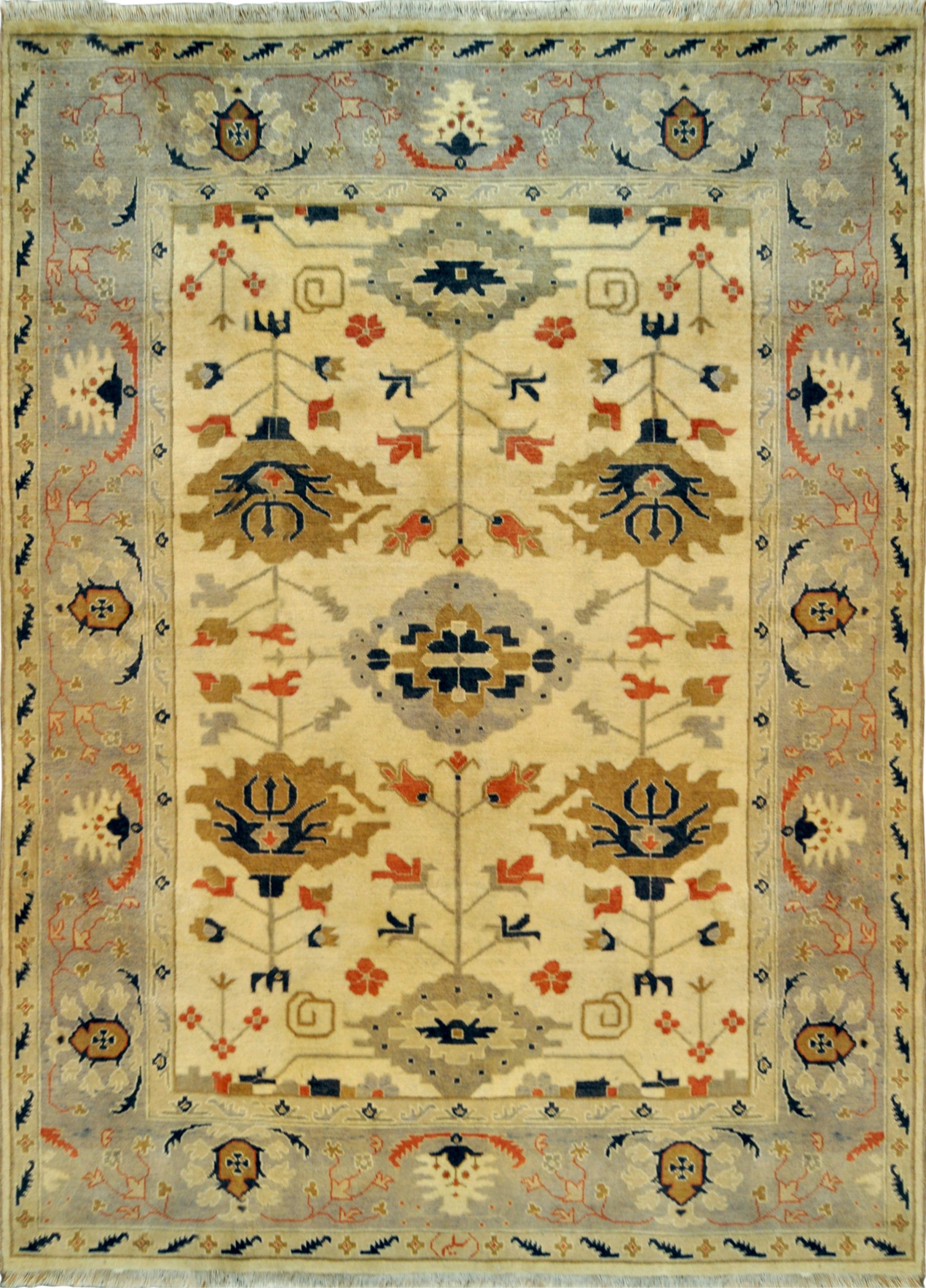 Ковер соткан из натуральной неокрашенной овечьей шерсти благородного бежевого оттенка. Такой материал не только исключительно экологичен, но и обладает естественным мягким блеском и уникальной способностью создавать в доме идеальный микроклимат. Основные элементы рисунка также выполнены из неокрашенной шерсти, что создает тонкую, благородную игру природных оттенков.