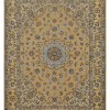 Мы выбрали этот ковёр за гениальное цветовое решение мастера Миршокри. Вместо кричащего зелёного — изысканная нежно-зелёная кайма, обрамляющая серо-бежевое поле с золотым шитьём. Такой подход делает ковёр универсальным шедевром: он не перетягивает внимание, а гармонично дополняет интерьер, придавая ему лёгкость и благородство. Редкое сочетание цветов и высочайшая плотность плетения, сравнимая с шёлковыми коврами, делают его жемчужиной нашей коллекции.