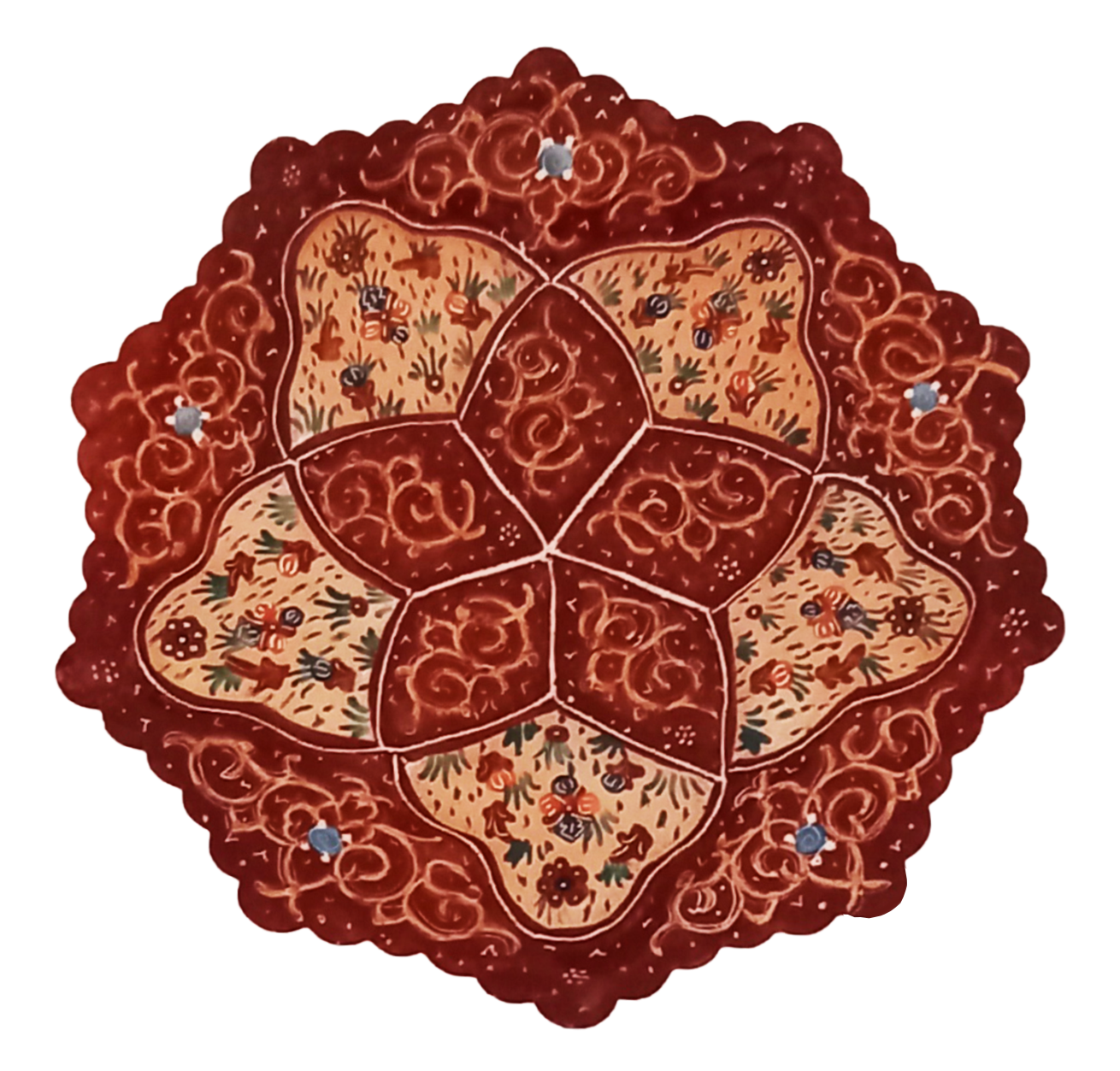 Перед вами исключительная редкость в мире персидского искусства — медная эмалированная тарелка диаметром всего 8,5 см, выполненная в редкой коричневой гамме. В то время как традиционные мастера Исфахана столетиями использовали синие оттенки, эта миниатюрная жемчужина представляет собой смелый отход от канонов.